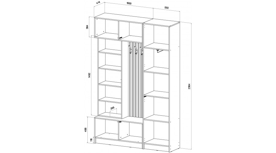 | Наполнение | полки + штанга выдвижная |